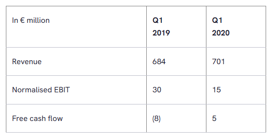 - Committed to FY 2020 outlook for normalised EBIT of between €110 million and €130 million; uncertainties regarding duration and severity of Covid-19 pandemic may impact ability to achieve this result