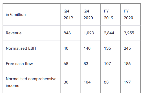 - Normalised EBIT: €205 million - €225 million, including around €(10) million for acceleration of digital transformation; uncertainty impact Covid-19 will remain