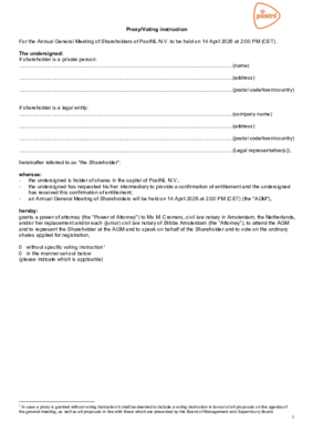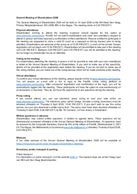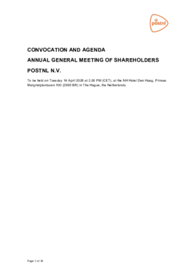 PostNL N.V.'s shareholders meet at least once a year for the Annual General Meeting of Shareholders. The meeting is convened by the Board of Management or the Supervisory Board.