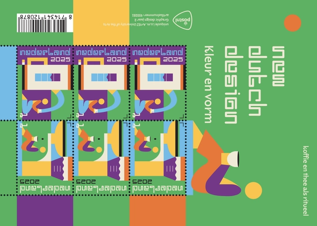 Den Haag, 17 februari 2025 – Vandaag presenteert PostNL het eerste postzegelvel van de nieuwe serie ‘New Dutch Design’. Deze serie toont werk van de toekomstige generatie Nederlandse grafische ontwerpers. Het ontwerp voor het eerste postzegelvel, met als thema koffie- en theerituelen, is gemaakt door tweedejaars studenten Graphic Design aan ArtEZ in Zwolle.