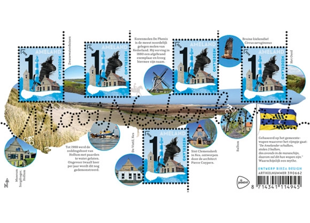 Den Haag – De bekende postzegelserie Mooi Nederland staat in 2019 in het teken van de Nederlandse Waddeneilanden. Vandaag is het vierde postzegelvel uit deze serie verschenen, met ruimschoots aandacht voor de natuur en de architectuur van Ameland. Begin dit jaar verschenen al postzegels over Texel, Vlieland en Terschelling. Na de zomer brengt PostNL nog postzegels over Schiermonnikoog uit en een verzamelvel over alle 5 de eilanden.