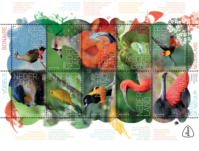 Den Haag, 2 januari 2024 - Voor de postzegelserie ‘Beleef de natuur’ maakt PostNL in 2024 een reis van bijna 8000 kilometer, naar het Caribische eiland Bonaire. Op de 4 postzegelvellen van dit jaar staat de natuur van deze bijzondere Nederlandse gemeente centraal. De eerste postzegels – over de vogels van Bonaire – zijn nu verschenen.