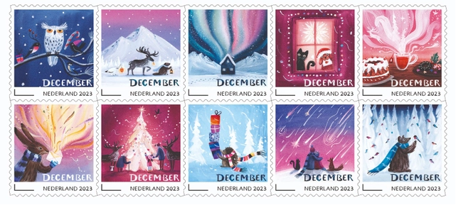 Den Haag, 13 november 2023 - PostNL heeft vandaag de decemberzegels van dit jaar onthuld. Deze postzegels met speciaal tarief staan in 2023 in het teken van het hoge noorden. De illustraties zijn gemaakt door de Nederlandse illustrator Linde Faas die in Tromsø in Noorwegen woont en werkt.