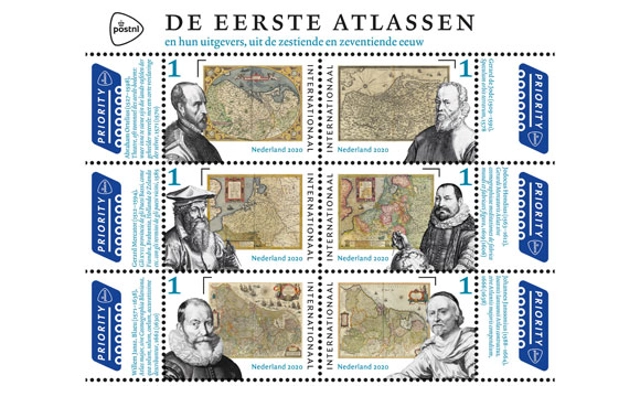 Den Haag, 23 maart 2020 – In 2020 is het 450 jaar geleden dat de allereerste atlas in druk verscheen, in Antwerpen. Al snel volgden er meer atlassen, die vooral in de Nederlanden werden uitgegeven. Met de uitgifte op 23 maart van het postzegelvel ‘De eerste atlassen’ besteedt PostNL aandacht aan 6 opmerkelijke uitgevers, hun atlassen en hun kaarten.