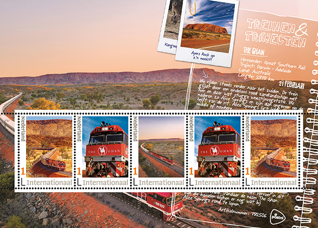 Den Haag, 15 juni 2020 – Met de persoonlijke postzegels uit de serie Treinen & Trajecten besteedt PostNL uitgebreid aandacht aan unieke treintrajecten over de hele wereld. Begin deze week verschenen de postzegelvellen over The Ghan en de Flying Scotsman, 2 beroemde spoorverbindingen in Australië en Groot-Brittannië.