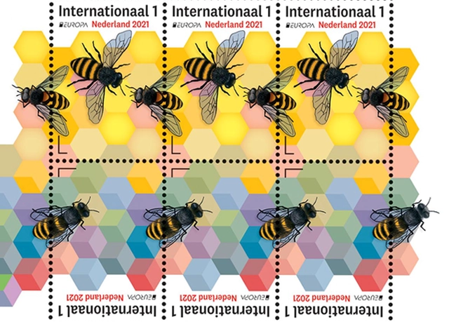 Den Haag, 10 mei 2021. Het gaat niet goed met de bij in Nederland. Om de aandacht te vestigen op de belangrijke rol die bijen spelen bij het bestuiven van wilde bloemen, fruit en andere landbouwgewassen, komt PostNL met een nieuwe postzegel.