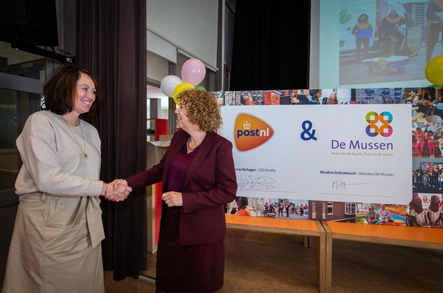 Den Haag – 20 september – PostNL en Haags buurtcentrum De Mussen trekken ook de komende jaren samen op. Op dinsdag 20 september gaven Herna Verhagen (CEO PostNL) en Nicoline Grötzebauch (Directeur van De Mussen) de officiële aftrap voor die verdere samenwerking. PostNL wil als favoriete bezorger en als goede buur een bijdrage blijven leveren aan het belangrijke werk van De Mussen voor een prettige woon- en leefomgeving in de wijken rond het hoofdkantoor van PostNL in Den Haag.
