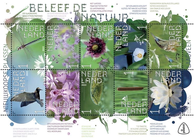 Den Haag, 21 februari 2022 - PostNL heeft vandaag tien postzegels uitgegeven over de flora en fauna van de Nieuwkoopse Plassen, in het hart van de provincie Zuid-Holland. De nieuwe uitgifte maakt deel uit van de meerjarige serie Beleef de natuur.