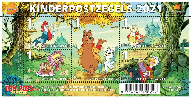 Den Haag - Op de kinderpostzegels van dit jaar staan beroemde stripfiguren uit de avonturen van Tom Poes en heer Bommel. Zij vieren samen feest vanwege de 80ste verjaardag van Tom Poes.