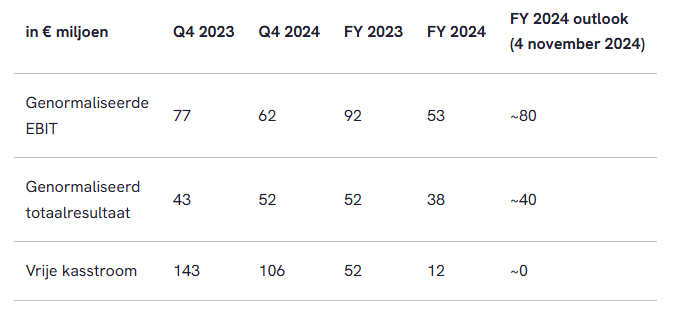 - Verwachte genormaliseerde EBIT over 2024: circa € 53 miljoen
