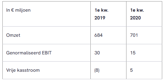 - Gecommitteerd aan afgegeven 2020 verwachting voor genormaliseerd EBIT tussen € 110 miljoen en € 130 miljoen. Onzekerheden rond duur en ernst van pandemie kunnen realisatie hiervan beïnvloeden