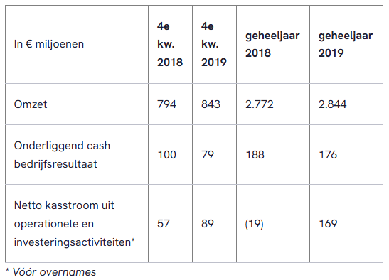 Sterke bedrijfsresultaten in Q4 leiden tot onderliggend cash bedrijfsresultaat voor heel 2019 van € 176 miljoen