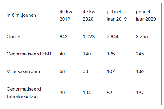 - Uitzonderlijke resultaatontwikkeling in 2020 bij zowel Pakketten als Mail in Nederland resulteerde in genormaliseerde EBIT van € 245 miljoen, waarvan naar verwachting € 55 miljoen eenmalig resultaat, gedreven door Covid-19
