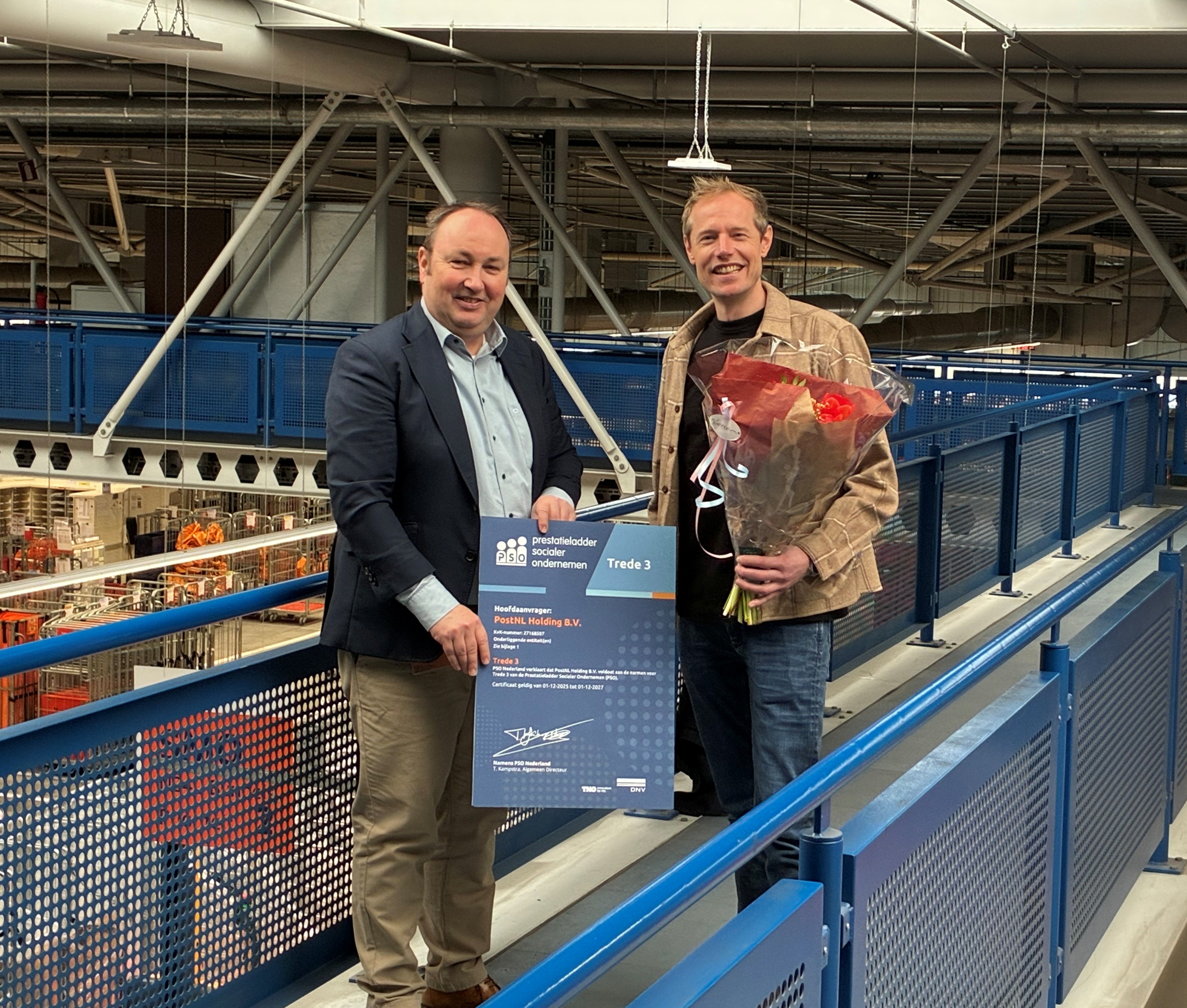 Den Haag, 9 februari 2026 - PostNL heeft opnieuw het PSO-certificaat Trede 3 uitgereikt gekregen. Deze trede is het hoogste niveau binnen de Prestatieladder Socialer Ondernemen. Maurice Unck, directeur Mail NL, nam namens PostNL het certificaat in ontvangst van Tako Kampstra, algemeen directeur van PSO Nederland. Met deze hercertificering behoort PostNL wederom tot de top 10% best presterende organisaties van vergelijkbare omvang op het gebied van sociaal ondernemerschap. Zo biedt het bedrijf met de inzet van onder andere jobcoaches structureel werk aan ruim 3.300 mensen met een kwetsbare positie op de arbeidsmarkt.