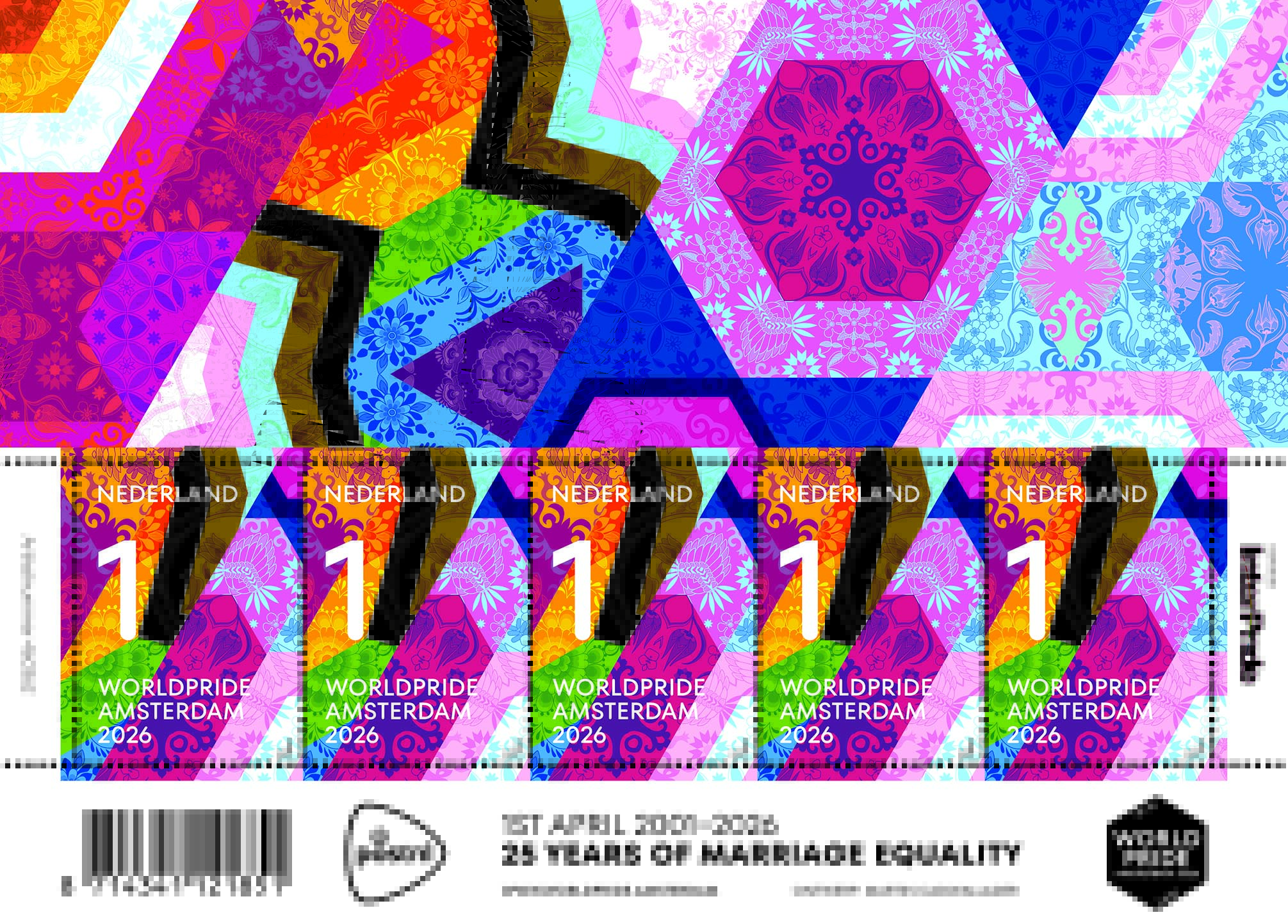 Den Haag, 2 april 2026 – PostNL brengt een speciaal postzegelvel uit voor WorldPride Amsterdam 2026. De uitgifte valt samen met het moment dat Nederland 25 jaar geleden geschiedenis schreef. Op 1 april 2001 voltrok Job Cohen, destijds burgemeester van Amsterdam, het allereerste huwelijk tussen mensen van hetzelfde geslacht. Vijfentwintig jaar later markeert dit moment nog altijd een belangrijke stap in de erkenning van gelijkwaardigheid en liefde in al haar vormen.